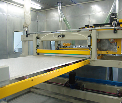 擁有國(guó)內(nèi)從歐洲全套引進(jìn)的柔性面材夾芯板連續(xù)生產(chǎn)線兩條。